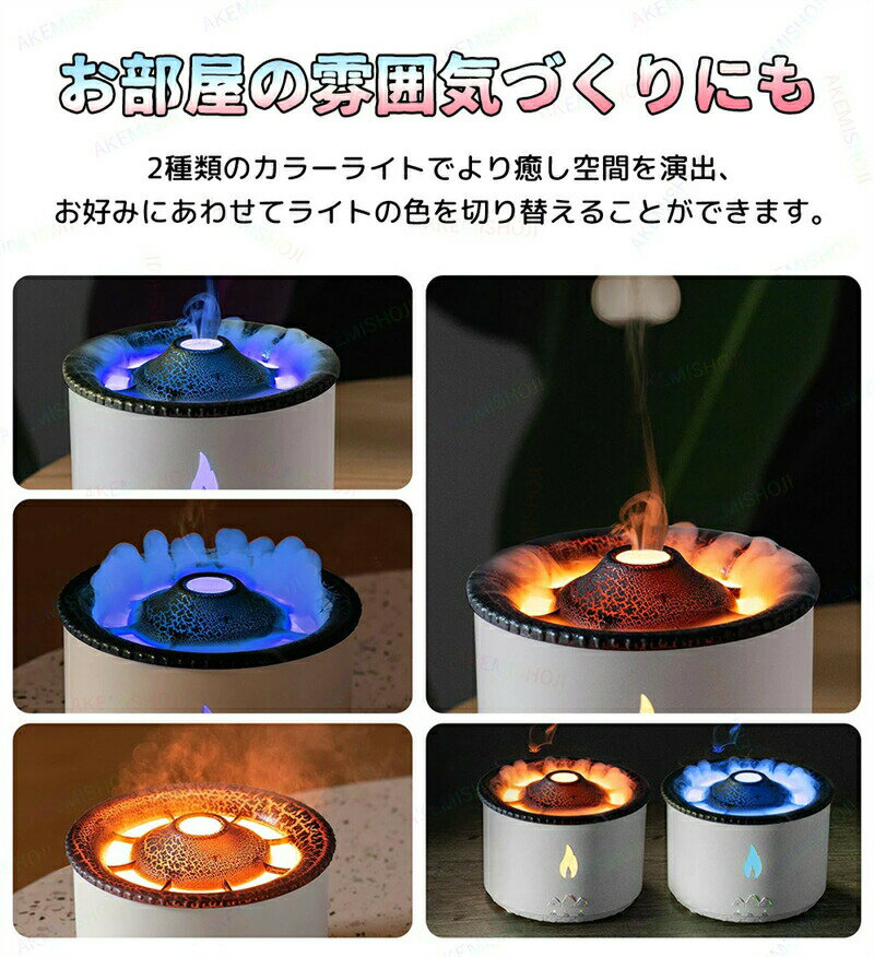 サイズ: 138*138*108mm素材: ABS/PP/電子部品電力: 12Wタンク容量:約360mlスチーム量:炎モード: 20~30ml/h火山モード:5...