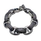 | ガボラトリー/ガボール (GABORATORY)4チゼルドH.W.O(ヘビーワイドオーバル)&アンカーチェーンリンクスブレスレット H.W.Oとアンカーチェーンの組み合わせ、<br>通称エルメスリンクをメインにしたブレスレット。<br>アニマルを使用していない分、価格も比較的リーズナブルです。<br><br>■■■商品仕様詳細■■■<br><br>□材質□<br>・スターリングシルバー<br><br>□サイズ□<br>・全長245mm (推進手首サイズ17.5cm〜)<br>・幅16.5mm<br><br> □付属品□<br>・保護袋<br>・ギャランティカード<br>・ブランドオリジナルポリッシュ<br><br>■在庫状況■<br>・オーダー商品... |