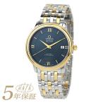 | オメガ デ・ヴィル プレステージ コーアクシャル クロノメーター 腕時計 OMEGA 424.20.37.20.03.001 ブルー 青 「オメガ デ・ヴィル プレステージ」コレクションのクラシカルでエレガントなデザインは、多くのオメガ愛好家を惹きつけています。高級感のある仕上がりを施したシンプルなスタイルと存在感あふれるタイムレスなデザインが特徴です。2つのゾーンに分かれた印象的なサンブラッシュ仕上げのブルーダイアルは、3時、6時、9時、12時位置にイエローゴールドの古典的なローマ数字アワーインデックス、3時位置に日付表示が付属しています。<br><br><br>メーカー:OMEGA(オメガ)<br>メーカー型番:424.20.37.20.03.001<br>ムーブメント・キャリバー:自動巻き(48時間パワーリザーブ)<br>防水性能:3ATM<br>機能・仕様:3針、デイト<br>ベルトタイプ:ブレスレット/最大 約17cm<br>ケース径:約36.8mm<br>ケース素材:ステンレススチール/18Kイエローゴールド<br>ベゼル素材:18Kイエローゴールド<br>ベゼル素材... |
