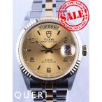 | チュードルプリンスデイトデイ76213中古 チュードルプリンスデイトデイ76213を最安値価格で販売中!<br><br>こちらのチュードルプリンスデイトデイ76213は、ステンレススチールとイエローゴールドの美しいコンビモデルの時計です。<br><br>放射状に輝くシャンパンゴールドの文字盤、飛びアラビアのインデックスが相性抜群ですね!12時位置の曜日表示とチュードルロゴ、「PRINCE DATE+DAY」の文字の全てがバランスよくまとまっています。<br><br>ケースサイズは36mmと、現在ではかなり小さめの部類に入ります。控えめながら機械式時計を身につけている主張をしたい方へおすすめです。<br><br>こちらの商品はブレスの一部にやや傷がございます。詳細は商品画像よりご確認ください。<br><br>時計を一番安く買えるクエリ(QUERI)では、チュードル76213を業界最安値価格で販売中!この腕時計の購入を検討されている方は、一本限りですのでお早めに!... |