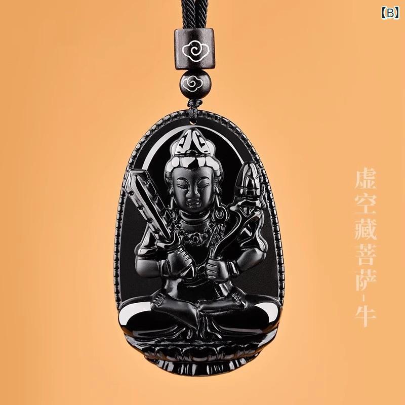 ネックレス レディース メンズ 黒曜石 十二支 守護本尊 ペンダント エスニック アミュレット 開運 お守り 千手観音 虚空蔵菩薩 文殊菩薩 普賢菩薩 勢至菩薩...