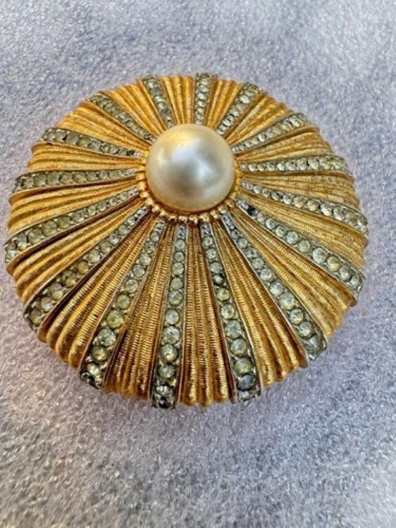 Rare Vintage Marcel Boucher Signed Gold-Tone Rhinestone Pearl Brooch Pin 8661D商品...