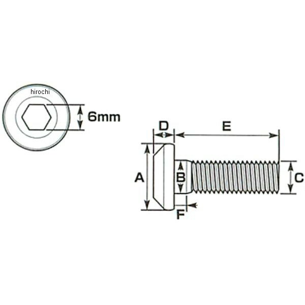 キタコ ローターボルト ホンダ M8X23.5X6汎用ホンダタイプM8XP1.25サイズ:(A)16 (B)10 (C)8 (D)2.5 (E)23.5 (F)...