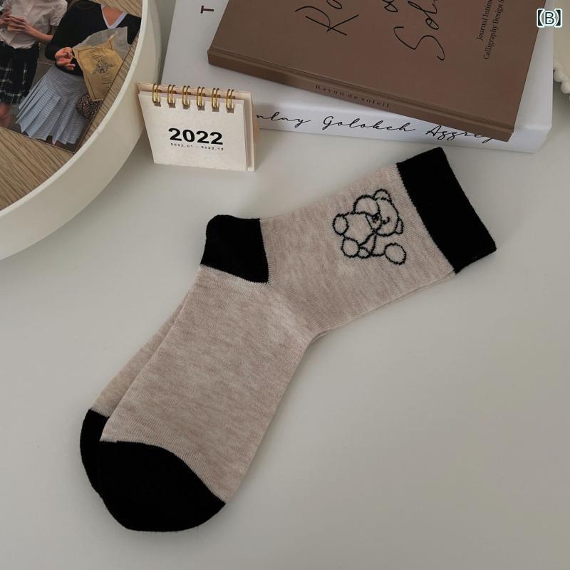 2個セット靴下 レディース 秋冬 厚手 ウール 混紡 ソックス 中筒丈 花柄 アニマル柄 千鳥格子柄 ゼブラ柄 かわいい カジュアル・素材: 羊毛・柄: 动漫卡...