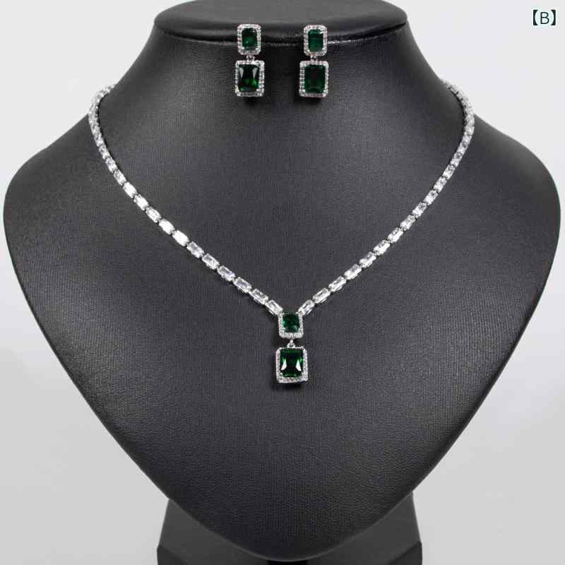 ネックレス レディース キュービックジルコニア スクエア ペンダント イヤリング セット 鎖骨チェーン ジュエリー 通勤 エレガント かわいい・素材: 銅・処理...