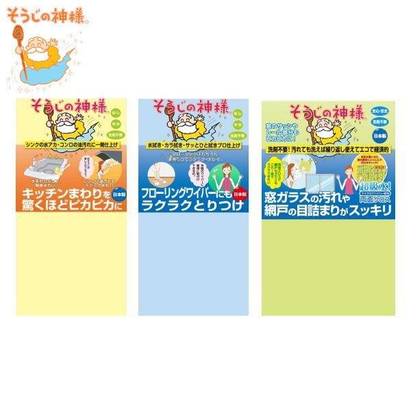 ![]() | クロス そうじの神様 お試しバラエティセット 3種類 フローリング用 キッチン用 網戸用 ( 雑巾 お掃除クロス クリーナー ) サイズ/フローリング用:約縦27×横24cm<br>キッチン用:約縦26.5×横26.5cm<br>窓・網戸用:約縦40×横33cm<br>内容量/1セット(1枚×3種)<br>材質/ポリエステル、ナイロン<br>生産国/日本製<br><br>●フローリング用、キッチン用、窓・網戸用の3種のクロスがセットになったお試しバラエティセットです。<br>●フローリング用はフローリングワイパーにもピッタリのサイズ、ソフトなタオル調生地なので乾拭きで油汚れもしっかり取れます。<br>●キッチン用は凹凸のあるパイル調生地、水拭きだけで油汚れやくもり汚れをかき取ります。<br>●窓・網戸用は両面が異なるダブルフェイスクロスで、長い毛足で汚れをキャッチして凹凸のあるパイル調で窓の汚れをかき取ります。<br><br>フローリング キッチン 窓 網戸 頑固 汚れ 油汚れ くもり汚れ ほこり 落とす 拭き掃除 掃除用品 大掃除 万能クロス IH クッキングヒーター ... |