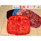 | ポーチ 渋い龍柄サテン(中) 人気の渋い龍柄サテン生地を使用した可愛いポーチです。カラフルなサテン生地は良く目立ち、人目を引きます。前面に中華結びの釦でとめるポケットがあります。<br><br>【商品詳細】<br>・サイズ 幅16cm×高さ14cm×マチ1.5cm<br>・色 黒、青、ピンク、赤、ローズ 全5色<br>・龍柄サテン地<br>・前面ポケット付き<br>・各一つの価格です<br>・中国製<br>※チャイナドレスなどの端布を使用しているので、柄は微妙に違います。<br>【ヤマト運輸(ネコポス便)使用】<br>・他の配送方法と同梱はできません<br>・配達日時の指定はできません<br>・ポスト投函になるので代引きはご利用できません... |