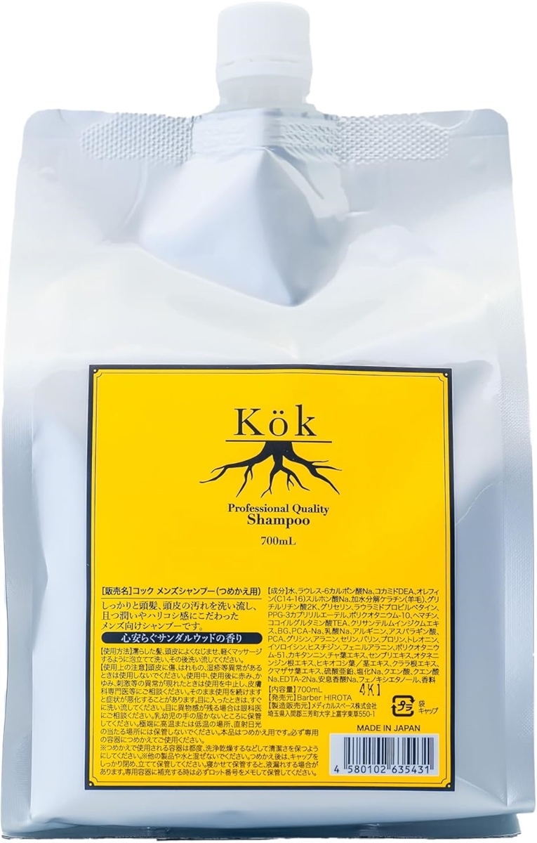 ![]() | メンズシャンプー オールインワン ハリコシ ボリュームアップ ヘマチン 高級成分 濃密泡 パーマ(700ml 詰め替え(ボトル2本分)) バリエーションコード : 2B9WWI9CNS<br>「現役のバーバー(理容師)が監修」実際に現場に立つ理容師がこだわる男性の悩みや希望に寄り添い ”使用感” ”効能 香り全てにおいてお客様の目線に立ってつくったシャンプーです。<br>「高級成分ヘマチン配合」毛髪に対する高度な補修効果のアプローチ。<br>頭皮から出る脂っぽいニオイを抑えたりする効果があります。<br>エイジングやダメージによって細く弱った髪に潤いとハリコシを与えボリューム感のあるスタイリングしやすい髪に導きます。<br>またカラーやパーマの持ちが良くなる効果を発揮します。<br>「酸性石鹸系シャンプー」高い洗浄力を持ちながら、髪や肌への刺激性が低く、泡立ちよくサッパリした洗い上がりが特徴です。<br>皮膚刺激やアレルギー性などはほとんどなく、安全性に問題のないと考えられています。<br>「サンダルウッドの香り」大人の男性が好むウッディーでエキゾチックな香りです。<br>またリラックス効果の高い香りですので毎日の... |