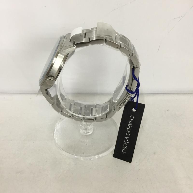 【中古】シャルル ホーゲル charles vogele 腕時計 ウォッチ クォーツ クロノグラフ カレンダー付き 黒文字盤 ロゴ シルバー色 CV7871-R...