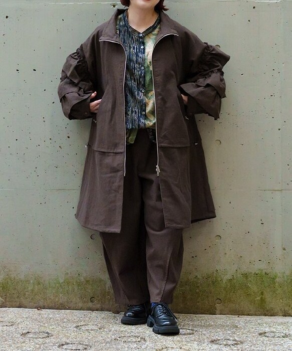 [型番:OI0715]◆ 螺旋のフリルが新しい表情をつくる! (大きいサイズ) ◆先染めのオリジナル素材は、天然繊維の綿と麻を組み合わせ、軽さと通気性を重視した...