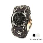 腕時計 革 ケイシーズ(KCs) ウォッチブレス ナッシュビル プレーン ブラック&ホワイト KIR503O 【ポイント10倍】<br>バックルで着脱するブレスレットタイプのレザーブレスウォッチです。<br><br>■ケイシーズ(KCs) ウォッチブレス カラー系統:マルチカラー<br>■プレゼント、ギフト、記念品、お祝い、贈り物に<br>■ホワイトデー、父の日、クリスマス、誕生日などの男性へ。<br><br>■本体色種類:ブラック&ホワイト<br>■サイズ<br>●ブレス:(腕周り)140〜190ミリ、(幅)17〜37ミリ、(厚み)3ミリ<br>●ムーブメント(ケース径):35ミリ<br>■素材<br>●ベルト:カウハイド(牛皮革)<br>●金具:星型スタッズ(ニッケル)<br>●ムーブメント(ケース):アロイ非防水クォーツ<br>■ハンドメイドの為、デザインやロゴ位置など個々に商品が異なります。予めご了承下さいませ。<br>■お取り寄せ対応商品のため、時計の本体につきましては、個々に色・柄が異なりお... |