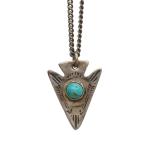| 【 一点物 希少 】 ヴィンテージ ナバホ ターコイズ アロー ネックレス アンティーク メンズ Vintage Navajo Arrow Necklace 20年以上に渡りラルフローレン・RRLに<br>ヴィンテージジュエリーやベルトなどを供給している<br>バイヤーと契約し、当店用に特別に入手してもらった<br>40年代のヴィンテージバングルをご紹介します。<br><br>アメリカでも一部の業者しかアクセス出来ない<br>流通ルートから仕入れた逸品。<br>全体にナバホ族のスタンプワークが精巧に施され、<br>中心に美しいターコイズが埋め込まれたネックレス。<br>ヴィンテージアイテムでしか出せない<br>独特な存在感が溢れています。<br><br>世界に一つしか無い一点物で大変希少価値が高く、<br>男性・女性どちらでも着用可能なサイズ感ですので<br>大切な方へのプレゼントにも喜ばれますよ。<br><br>在庫は一点のみです。<br><br>サイズ トップ全長約2.3cm チェーンの長さ約70cm... |